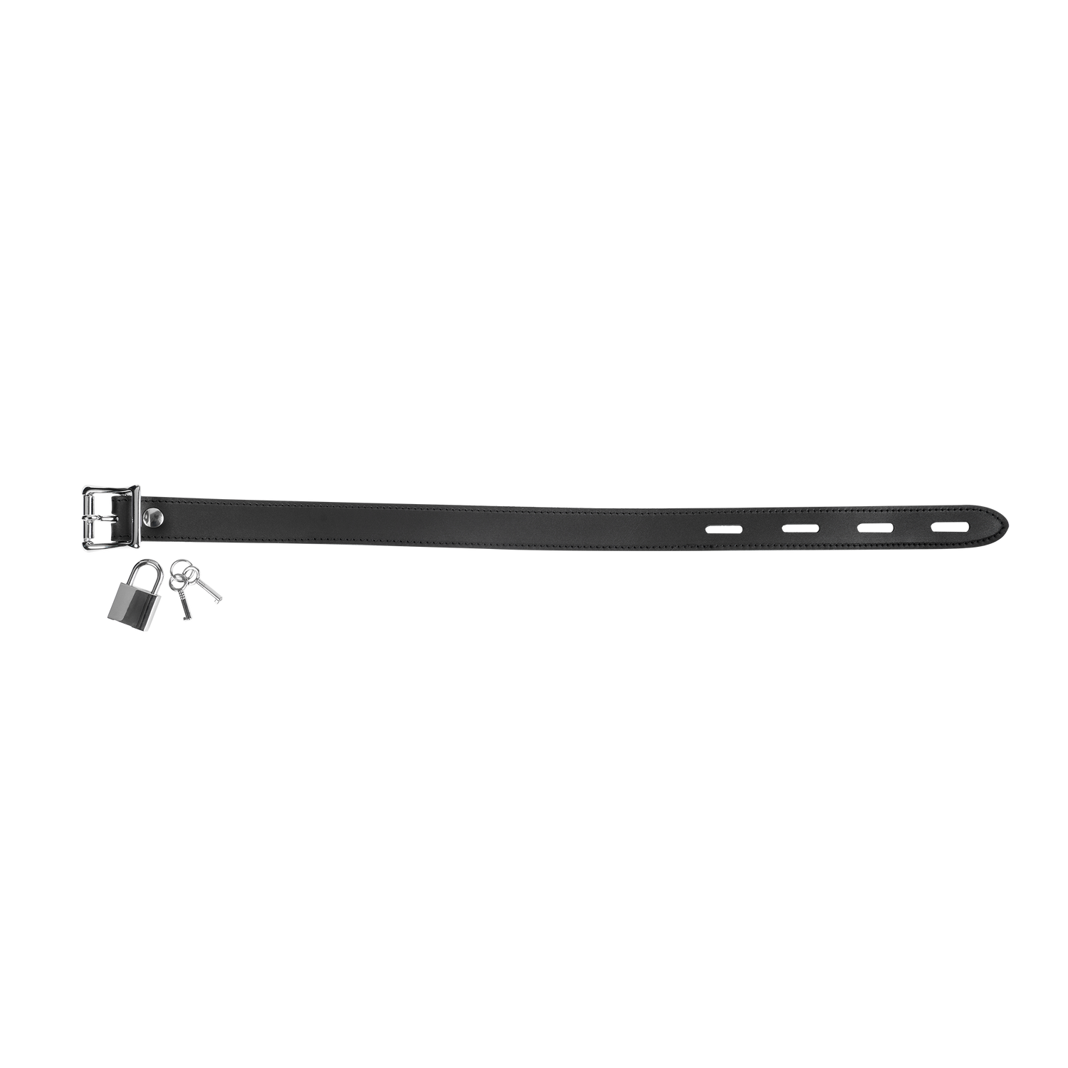 Rimba Bondage Play - Lederen Halsband met Hangslotsluiting - Zwart