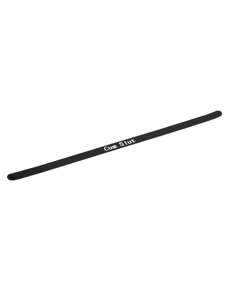 Rimba Latex Play - Halsband met opschrift 'Cum Slut' - Zwart & Wit