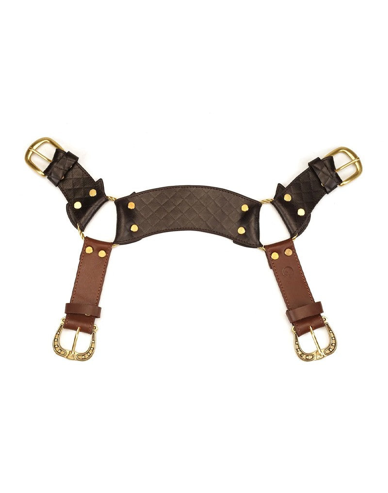 Het borstharnas is gemaakt van echt rundleer in twee kleuren en texturen, gevoerd met lamsleer en verfraaid met The Equestrian kenmerkende accenten in het goud.