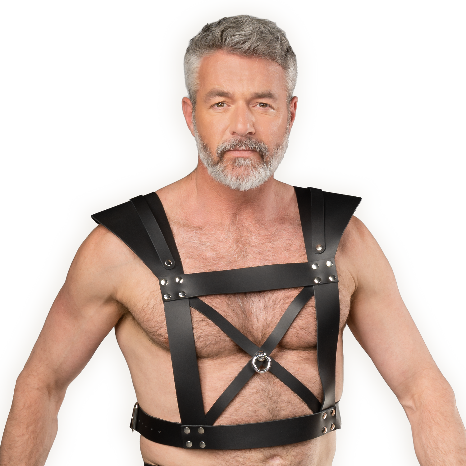 De banden met gespen aan de onderkant maken het harnas eenvoudig te verstellen naar de gewenste maat.