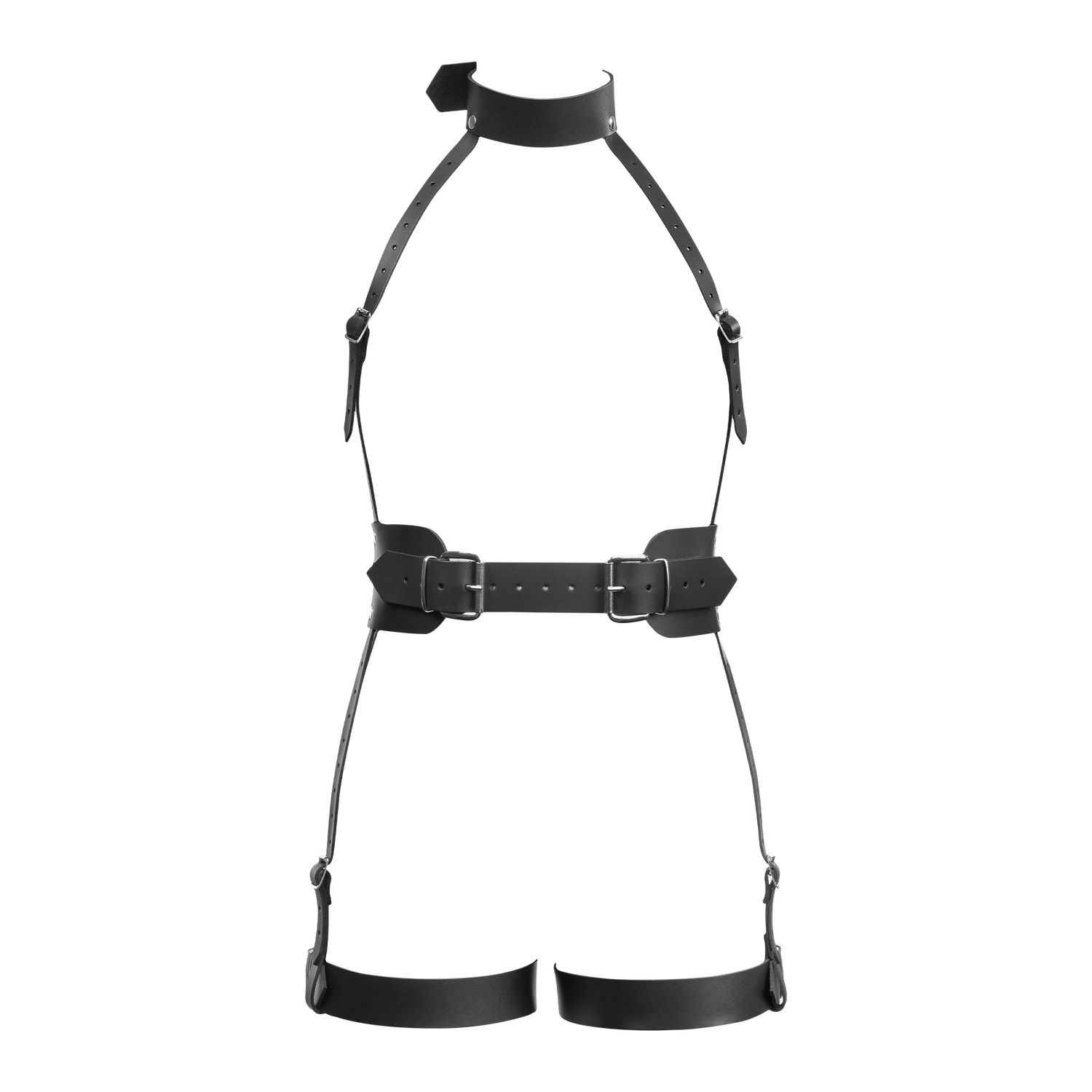 De body heeft een halsband, tailleband en twee bovenbeenbanden die via smalle bandjes met elkaar verbonden zijn.