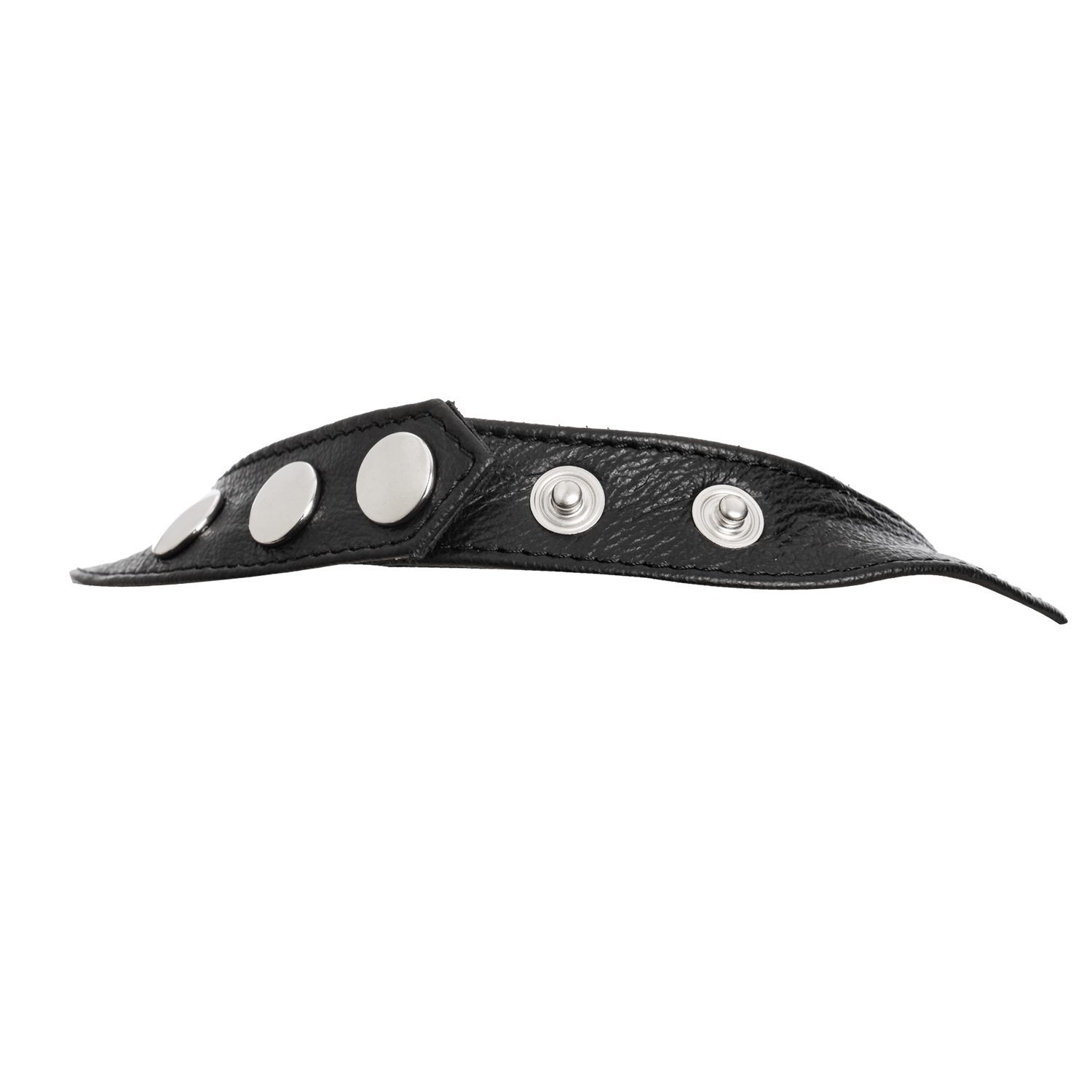 Hij is verstelbaar met een drukknoopsluiting in de nek en een vetersluiting aan de voorkant.