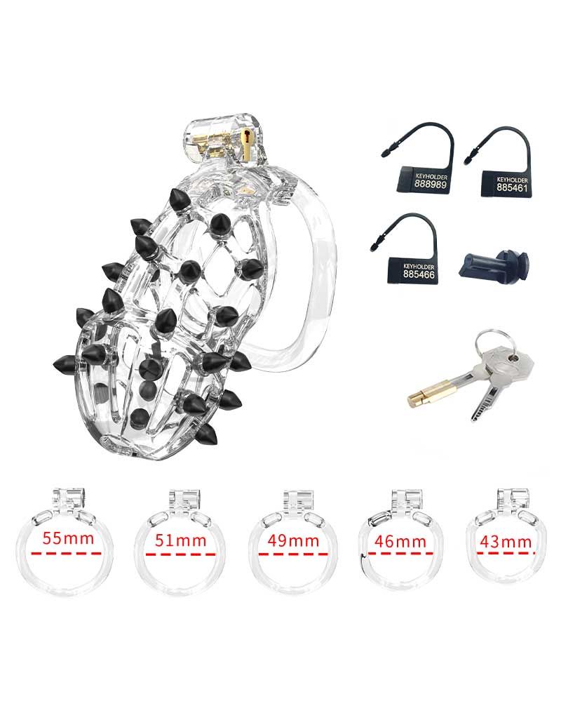 Transparante peniskooi maat L van hoogwaardig ABS-materiaal. Inclusief 5 ringen in verschillende maten. Comfortabel en duurzaam voor chastity.