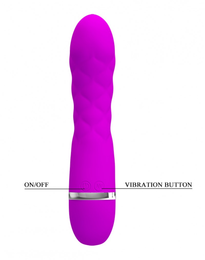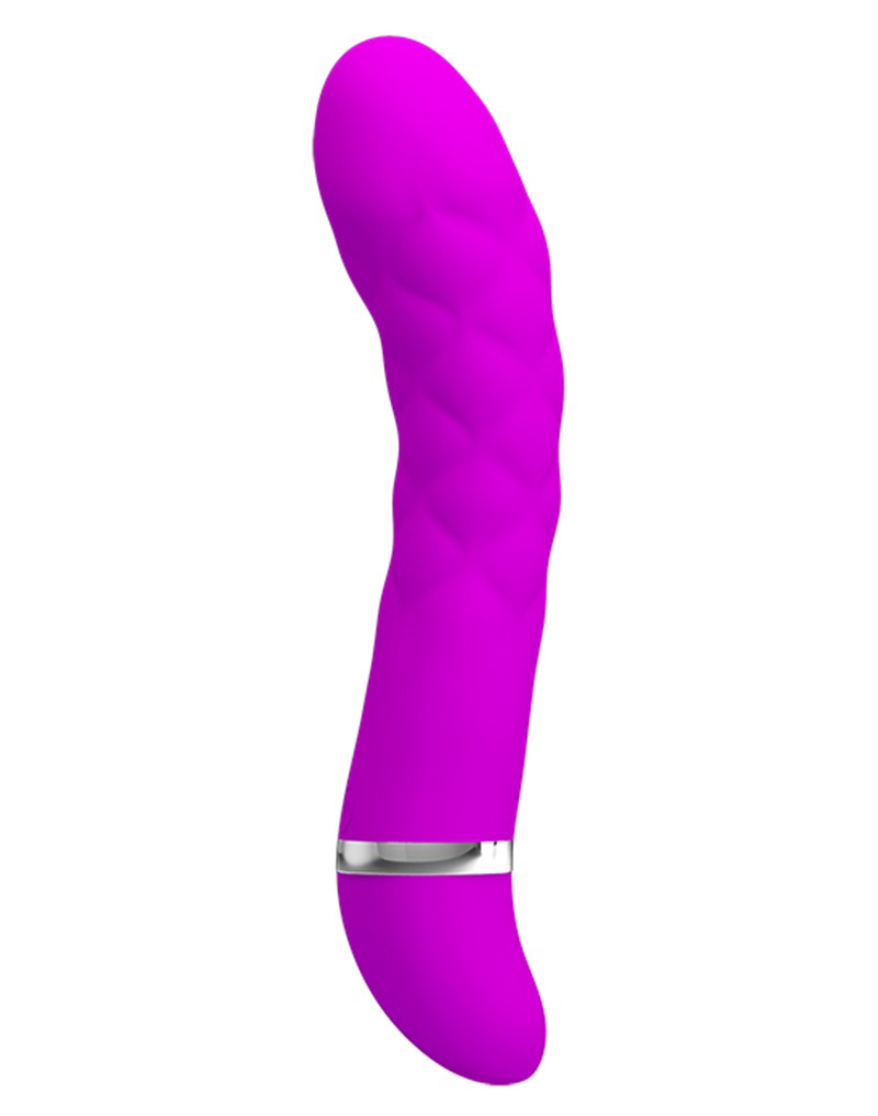 Gebogen g-spot vibrator van zacht siliconen met 7 vibratiefuncties. Afgeronde kop voor gerichte stimulatie. Werkt op 2 AAA batterijen.