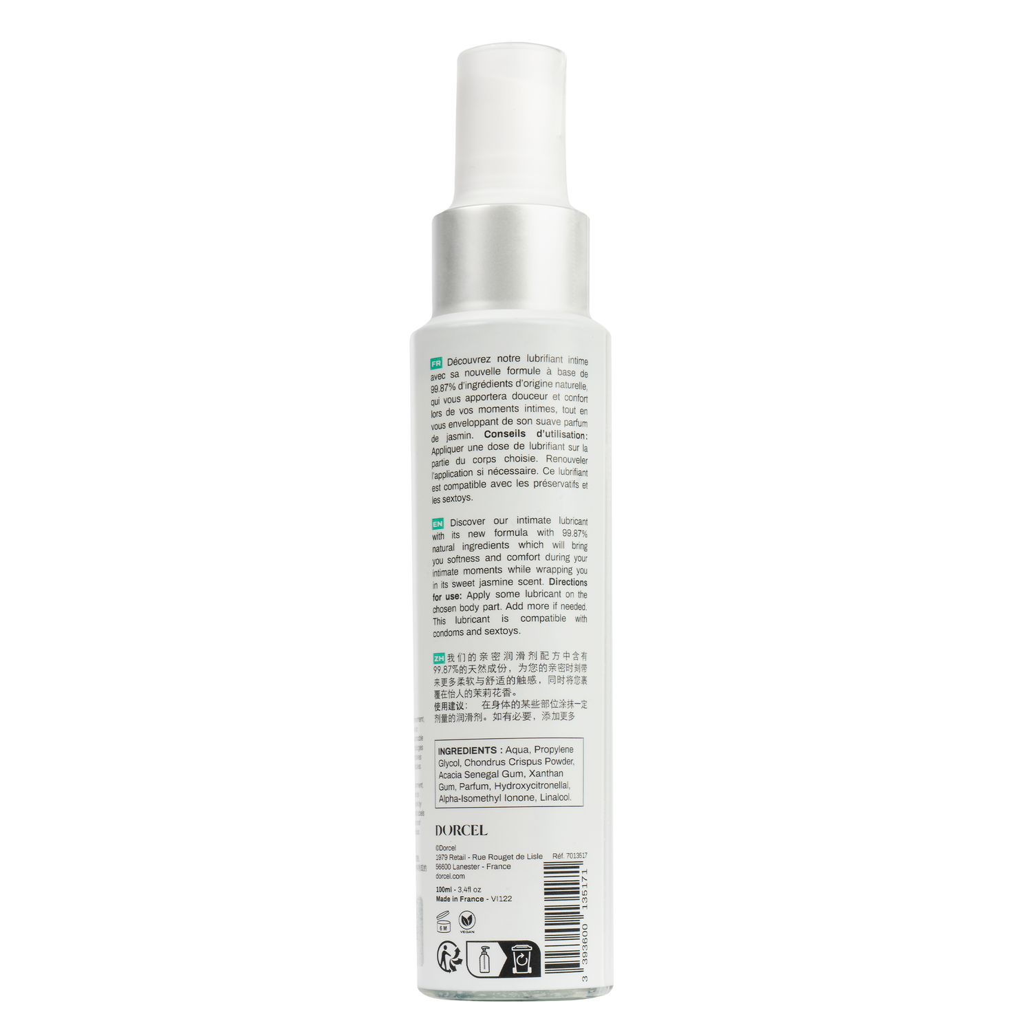 Ontdek ons intieme glijmiddel met de zoete geur van jasmijn, geformuleerd met 99,87% natuurlijke ingrediënten, om je zachtheid en comfort te brengen tijdens je intieme momenten.