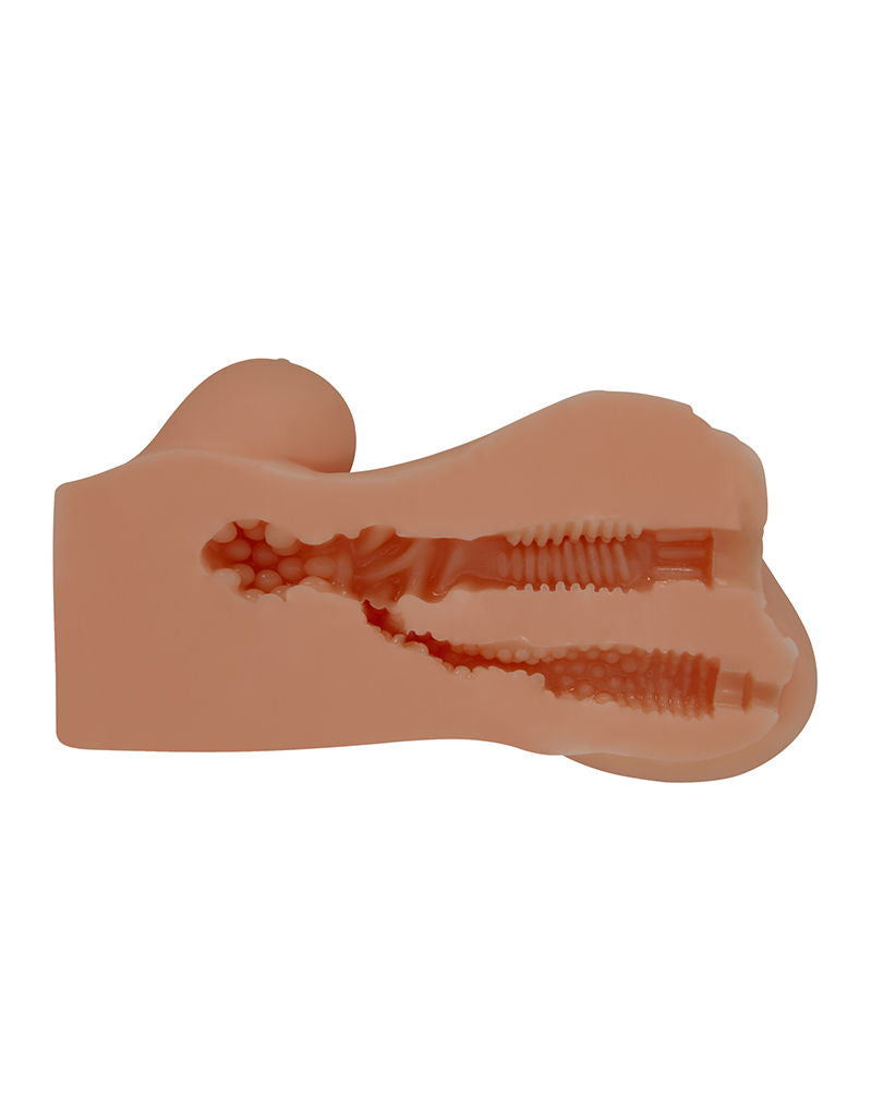 Vervul je dubbele fantasie met deze masturbator met twee kanalen waarmee je langs de voorkant kunt glippen en zo hard als je wilt op de achterkant kunt beuken!