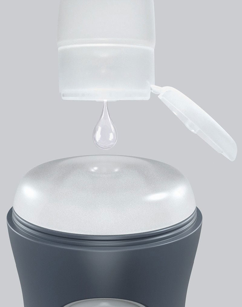 Automatische masturbator met drukregeling via knoppen. Zachte elastomeer textuur voor realistische sensatie. Herbruikbaar en compact.