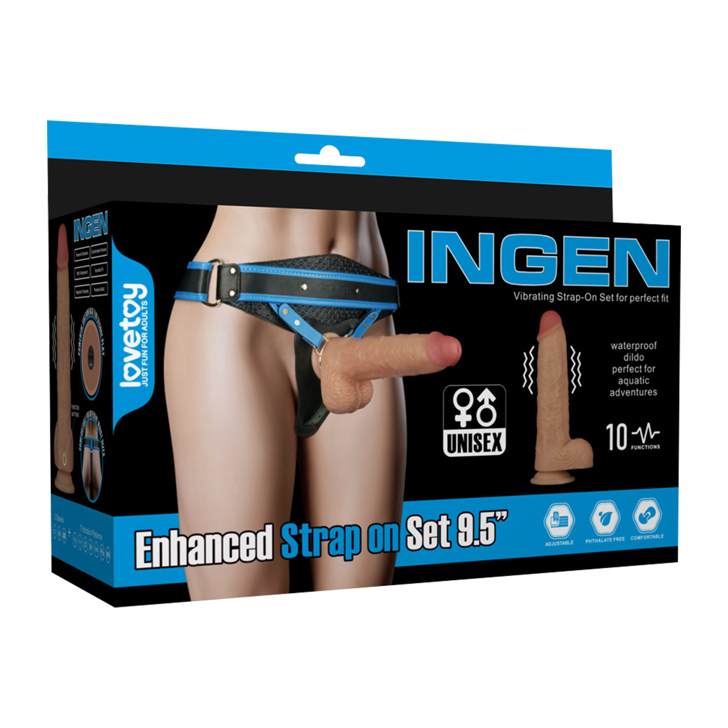 LoveToy - Ingen - Vibrating Enhanced Strap-on Set 9,5"/ 24 cm - Maat L/XL/2XL - Nude