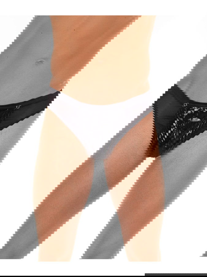 Amorable by Rimba - Doorzichtige string met lak look - One Size - Zwart
