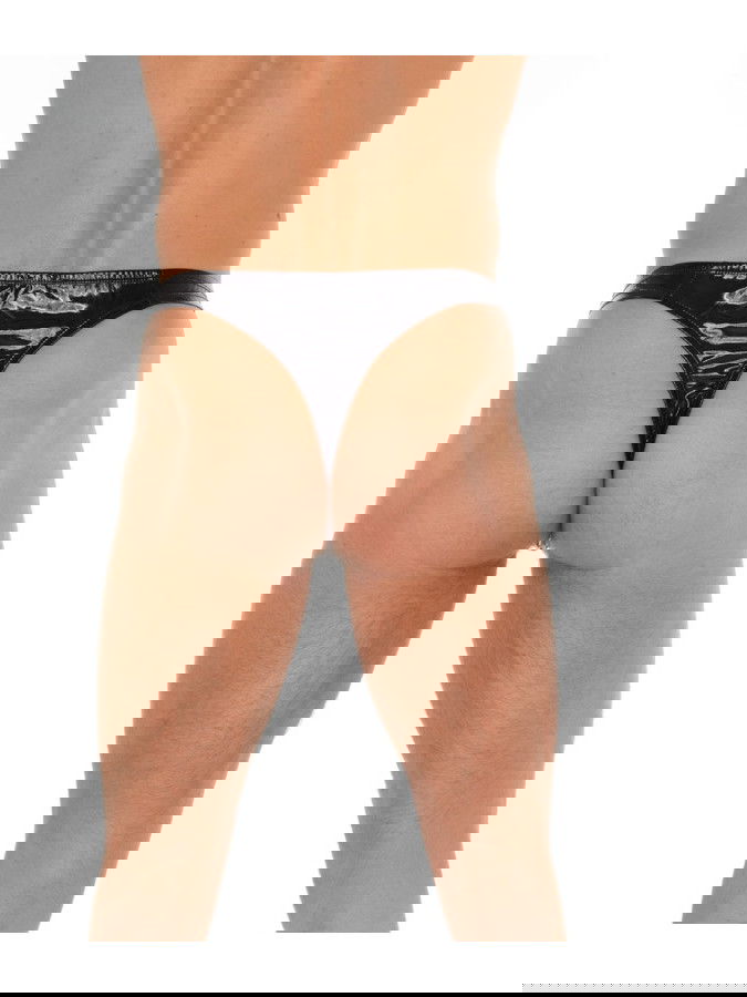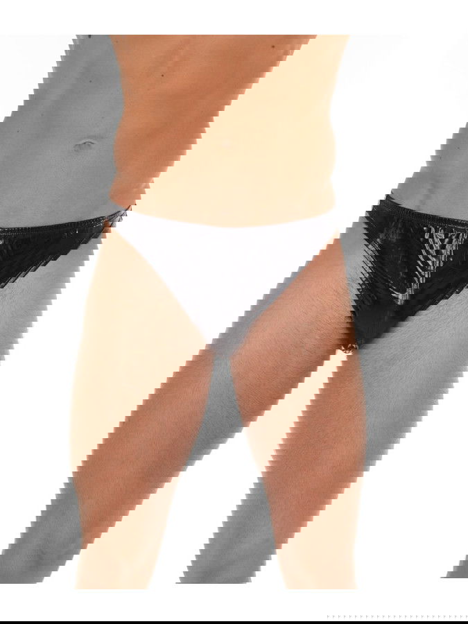 Verleidelijke string met glanzende lak look van polyurethaan. One Size voor perfecte pasvorm. Zwart design voor elegante uitstraling.