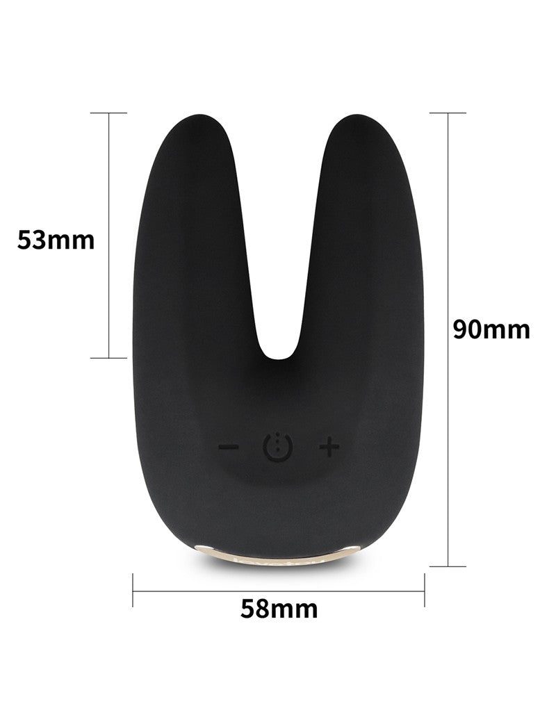 Dubbele vibrator voor clitoris en tepels met 2 flexibele oortjes. 9 vibratiemodi met 4 snelheden elk. USB oplaadbaar en compact voor reizen.