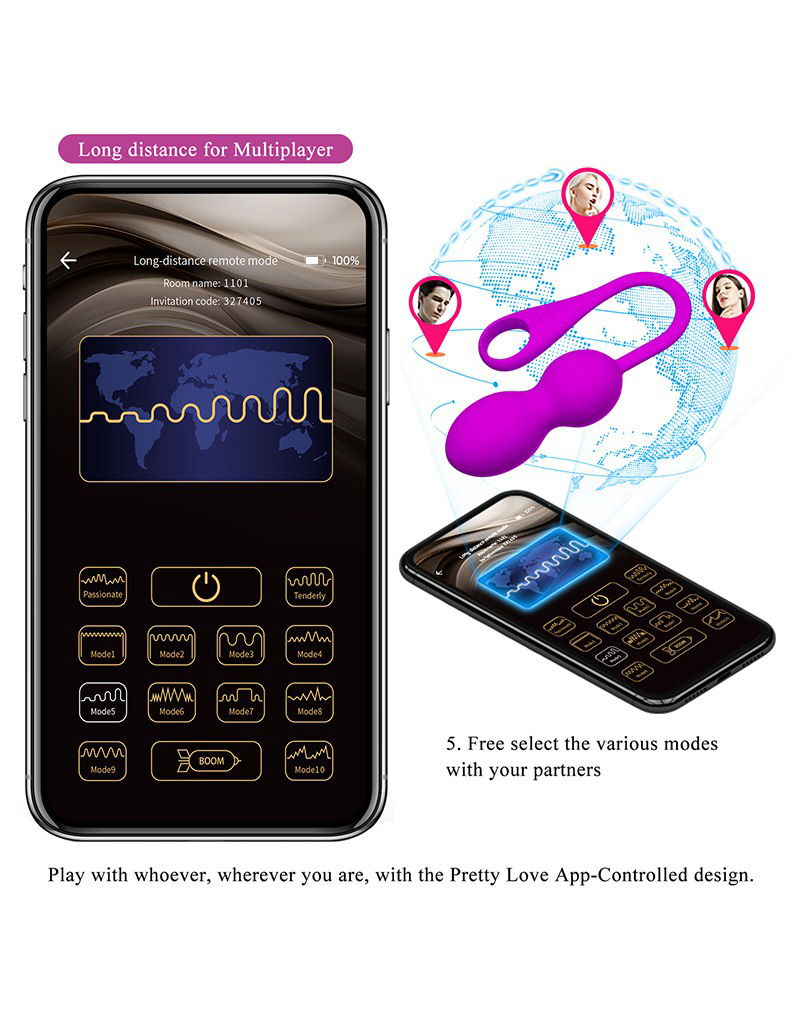 Pretty Love - Elvira - Vibrerende Kegelballetjes met App-bediening - Paars