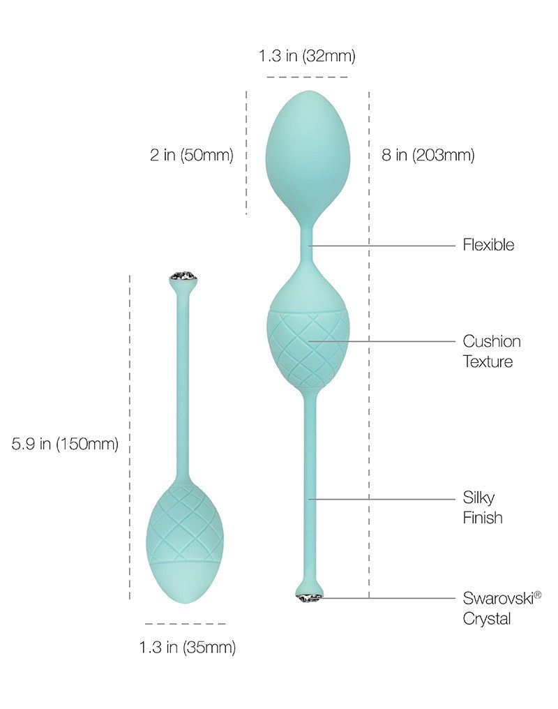 De nieuwe Pillow Talk Frisky Pleasure Balls vormen een perfect paar progressieve Kegel-ballen. Ze zijn perfect op het perfecte gewicht om de bekkenspieren te versterken en de opwinding te vergroten. Deze plezierballen leveren een stimulerende rockende beweging geïnspireerd op iemands natuurlijke bewegingen.