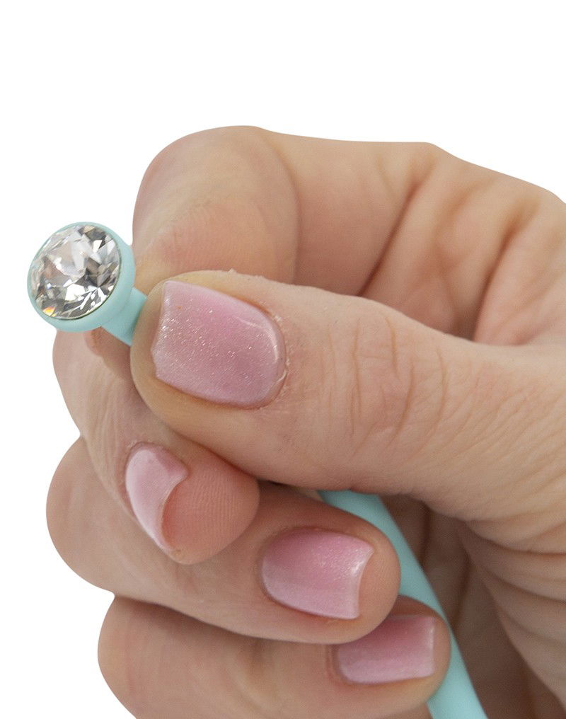 Frisky heeft een zachte kussentextuur die helpt bij het op zijn plaats houden, en een stijlvol siliconenkoord dat schittert met een Swarovski®-kristal.