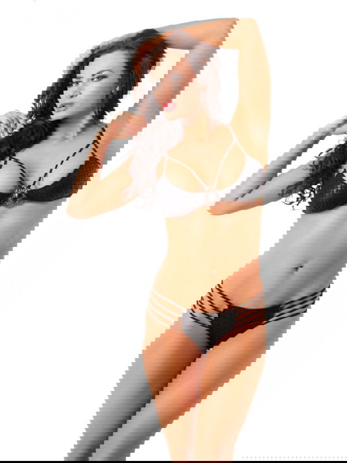 Glossy lingerieset bestaande uit BH en slipje in een mooie glansstof met decoratiestenen.