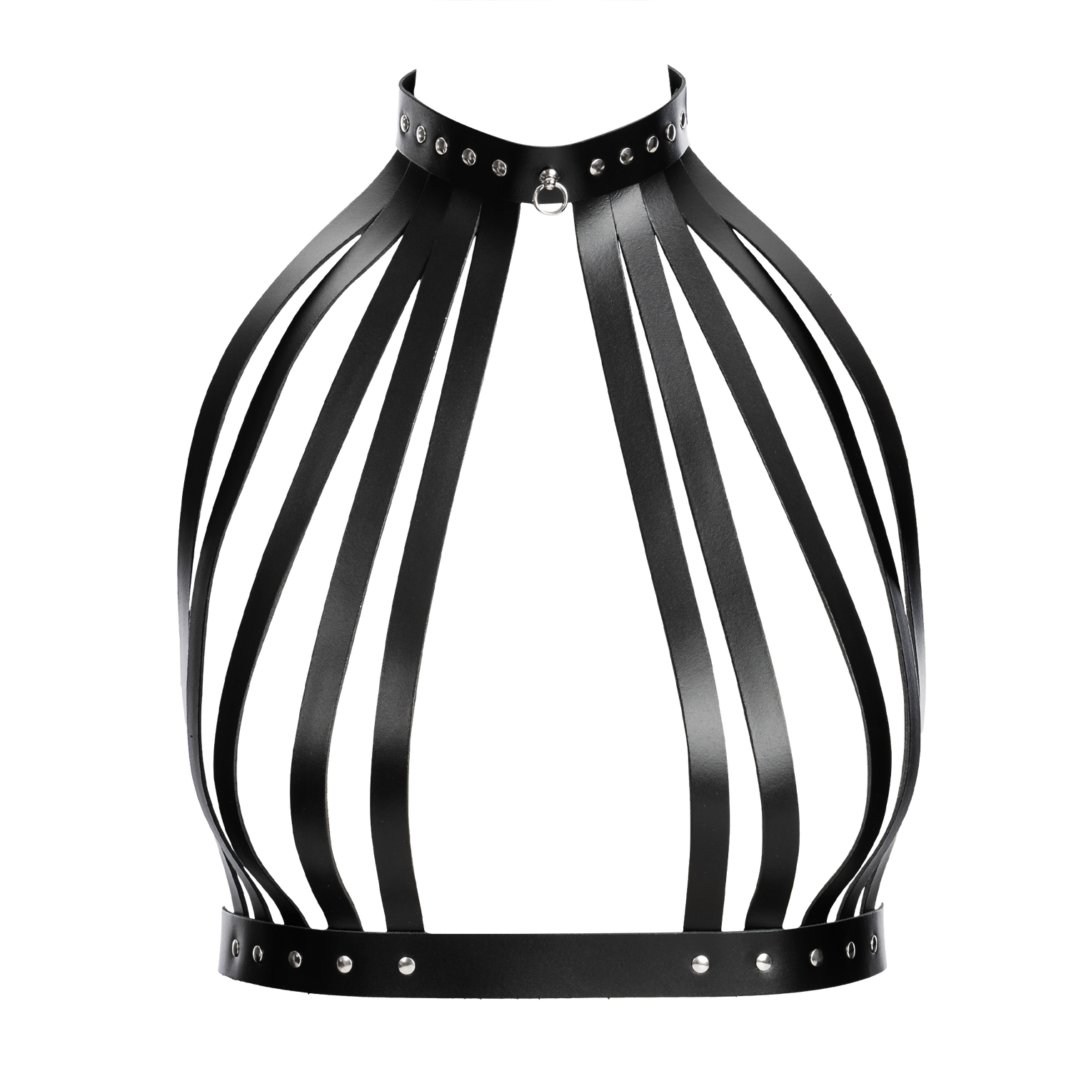 Rimba Bondage Play - Lederen Borstharnas met Halsband - Zwart