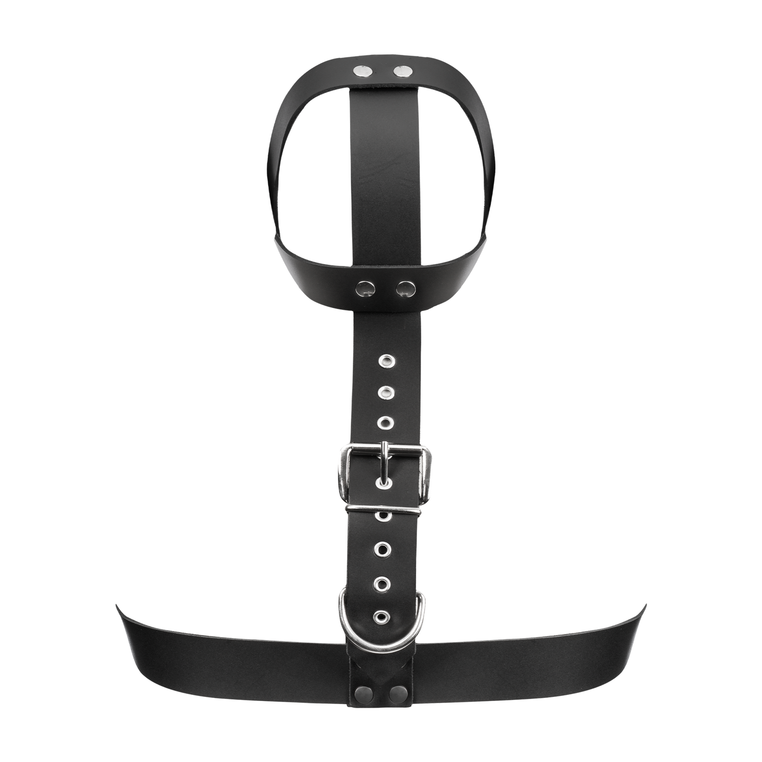 Dit harnas is handgemaakt van echt, stevig tuigleder en bestaat uit een hoofdharnas en een borstriem.