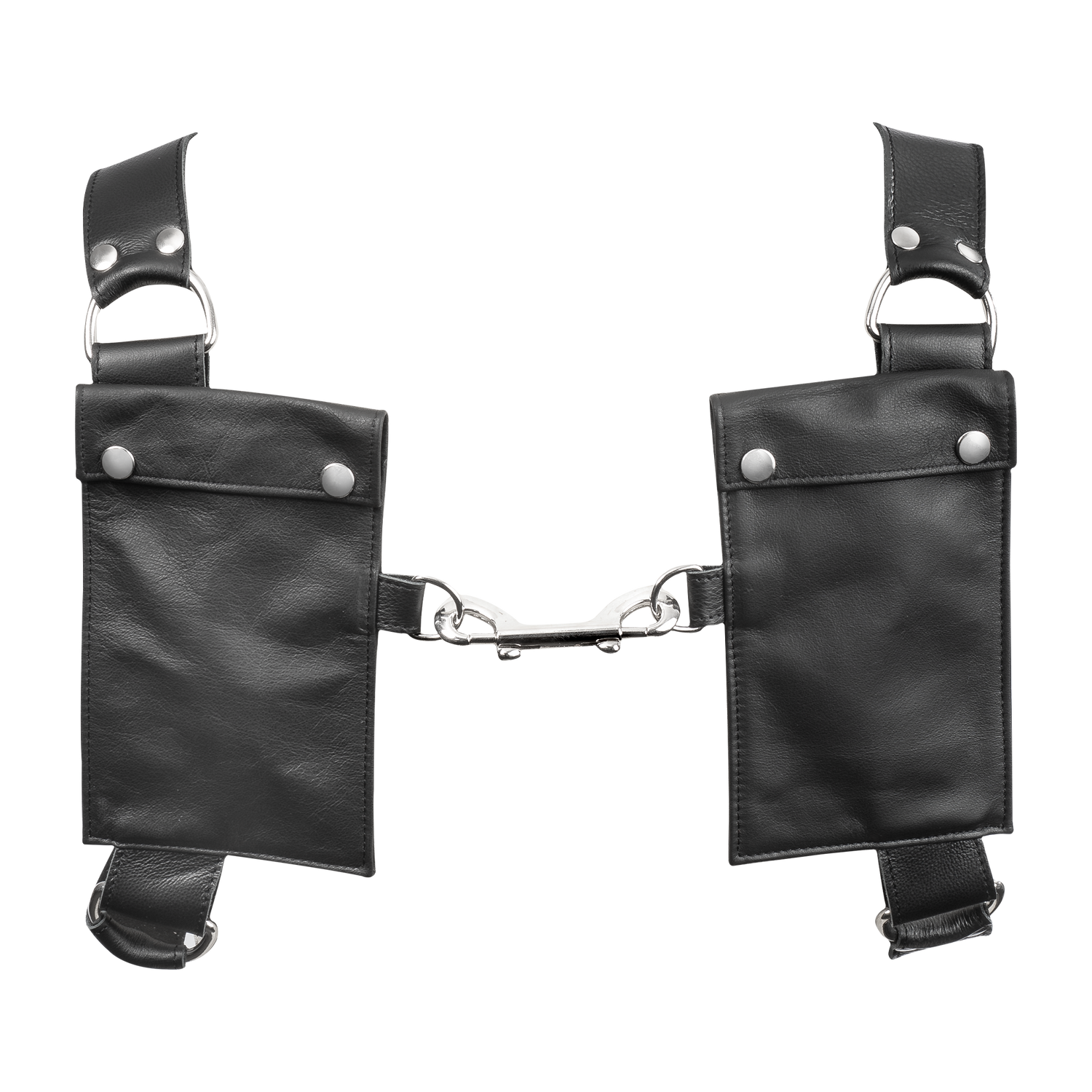 Rimba Bondage Play - Luxe Lederen Borstharnas met Zakken - Zwart