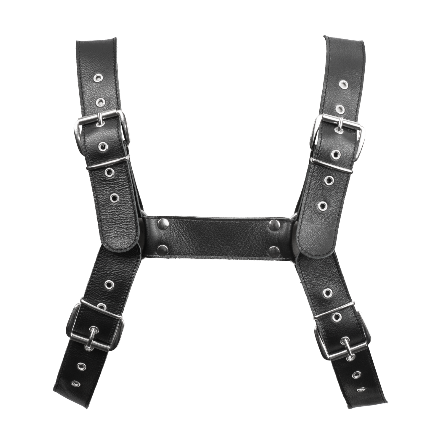 Dit lederen borstharnas is handgemaakt van luxe nappaleer en heeft een zachte suède binnenkant.