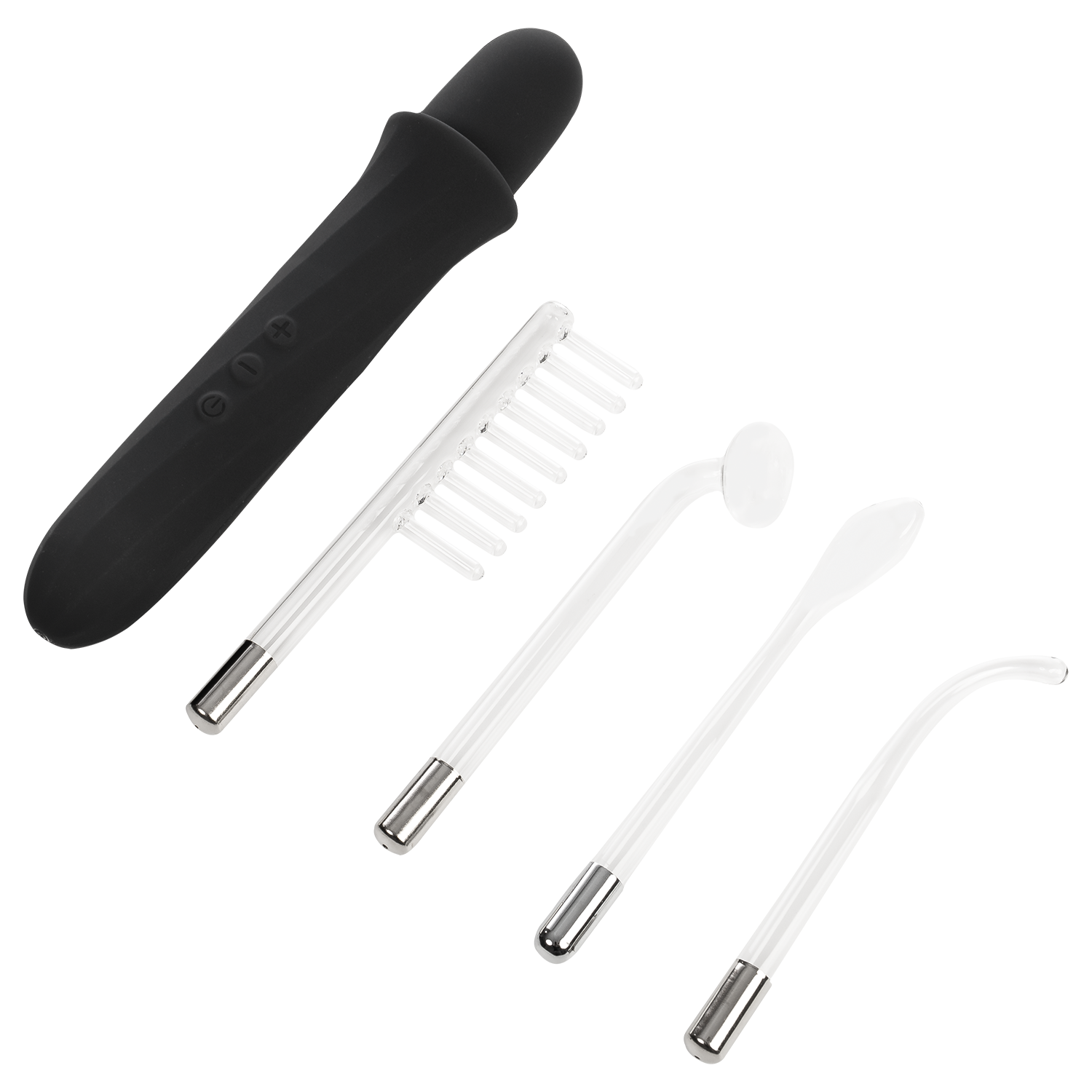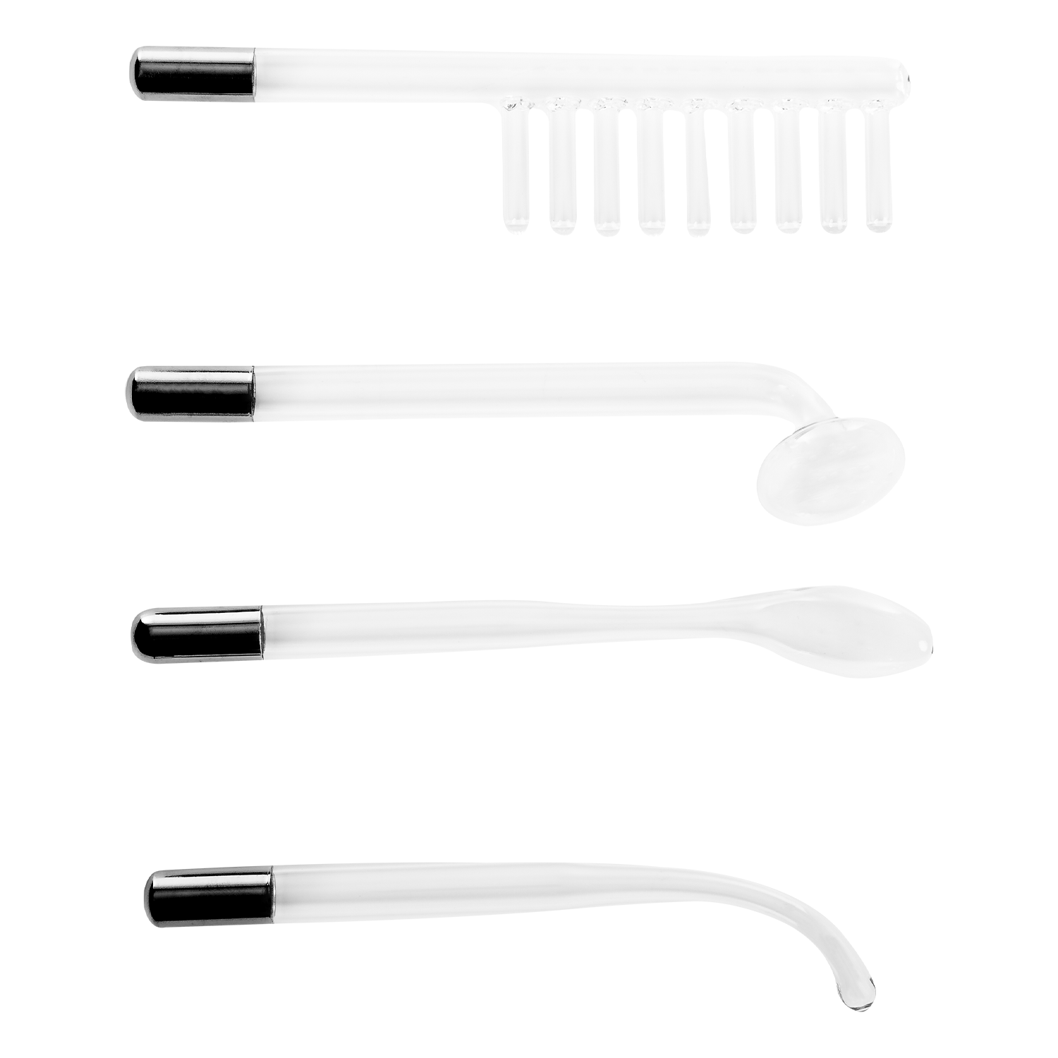 Deze set bevat 4 uniek gevormde glazen elektroden, elk ontworpen om een scala aan opwindende sensaties op de huid te leveren: