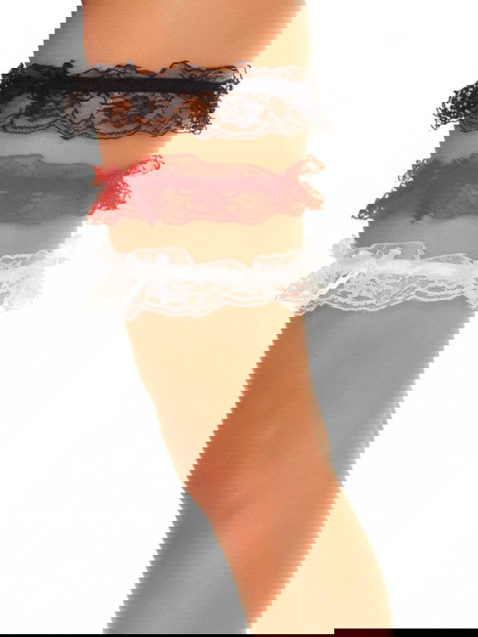 Sexy kousenbanden in setje van 2 stuks. Dit artikel in verkrijgbaar in 3 kleuren: Zwart = Ref # 1406 / Rood = Ref. 1407 en Wit is Ref.# 1408