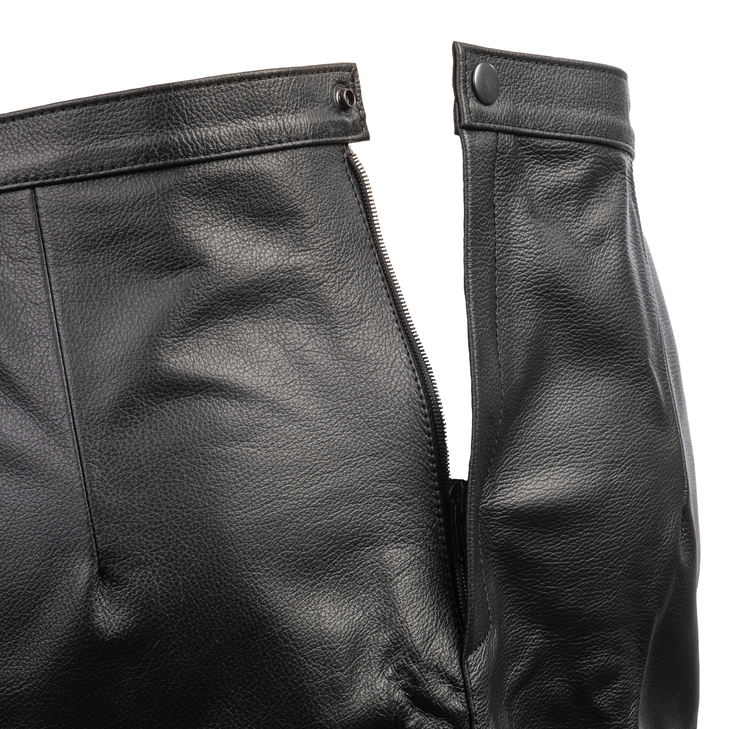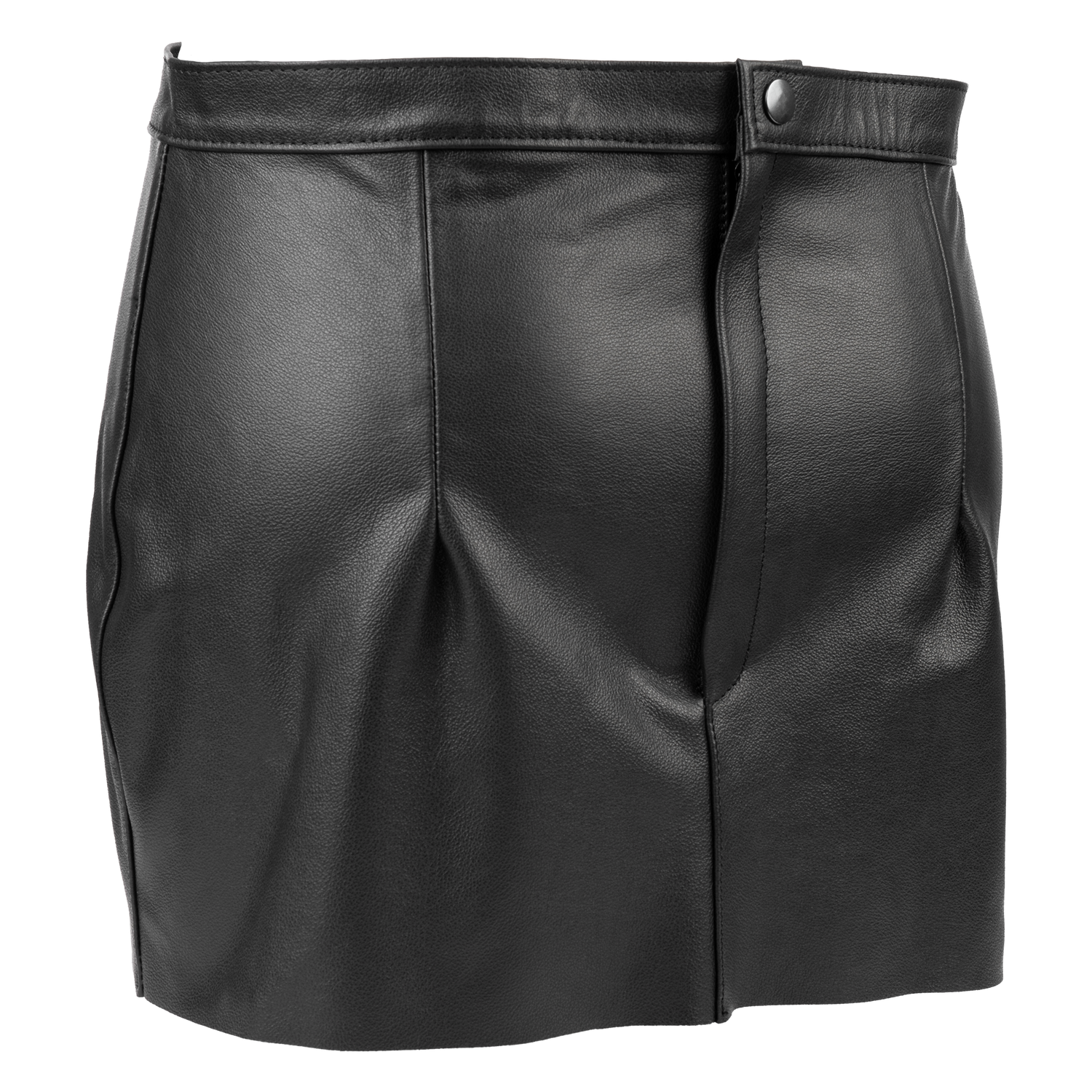 Ultra kort mini-rokje van echt nappa rundsleder met ritssluiting. Lengte slechts 32cm voor een verleidelijke look.