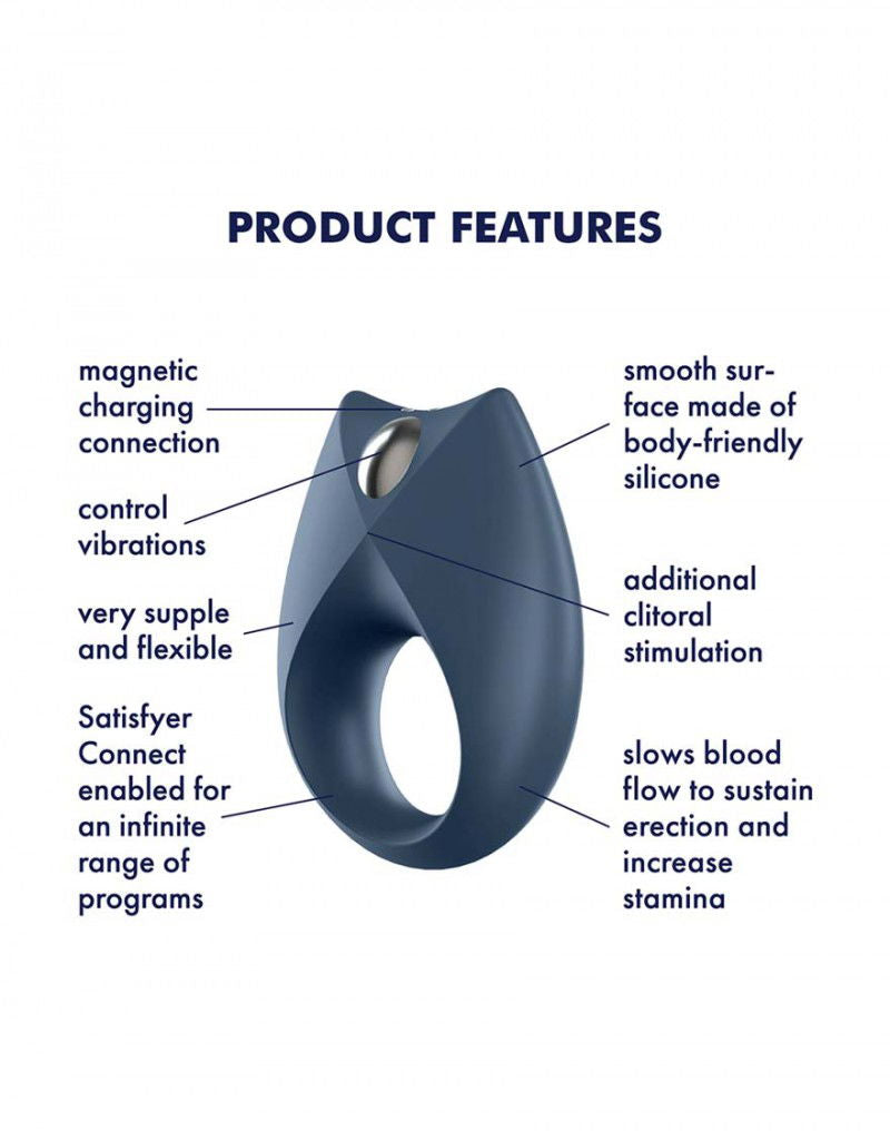 Royal One is een cockring vibrator die de bloedstroom naar de penis beperkt, waardoor de erectie wordt versterkt en langer wordt vastgehouden, terwijl het genot wordt verhoogd en vertraagd. Daarnaast zorgt de cockring vibrator bij gezamenlijk gebruik voor een clitorale stimulatie.
