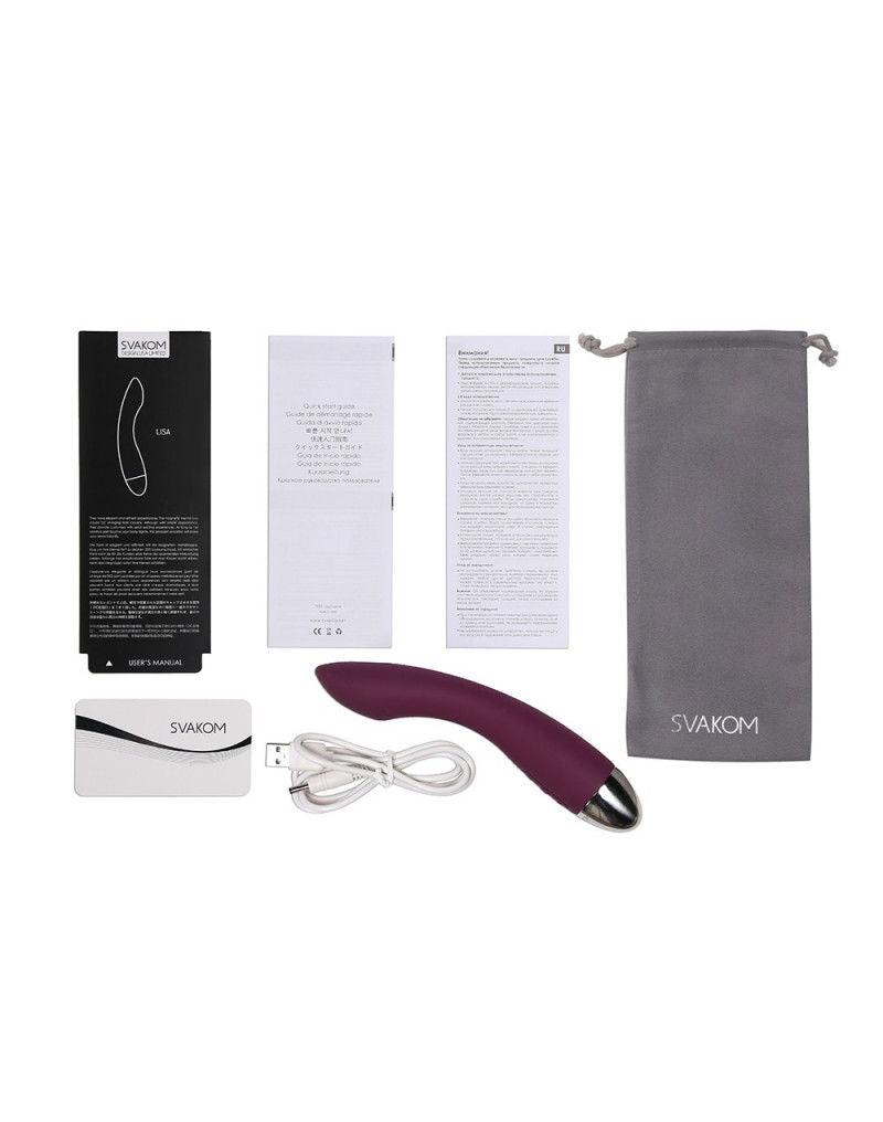 Lisa - glad, verfijnd, sensueel. Lisa zal ongeëvenaard plezier brengen met haar eenvoudig ontwerp en eenvoudige knop touch control, bestaande uit 5 verschillende snelheden. Lisa is touch activated en gebruikt SVAKOM gepatenteerde intelligente techniek: met een simpele aanraking trilt Lisa overal, langs het verleidelijk gebogen nek tot in de aanloop naar de top. Lisa zorgt voor spannende interne en G-Spot aandacht of bevredigende externe stimulatie. Lisa's veelzijdige vorm, krachtige stille motor en elegante styling geeft je de mogelijkheid om ultieme sensuele sensaties te creeëren. alleen of met je partne. Gemaakt met behulp van 100% gecertificeerde groene technologie. Lisa zal zeker uw nieuwste partner in passie worden.