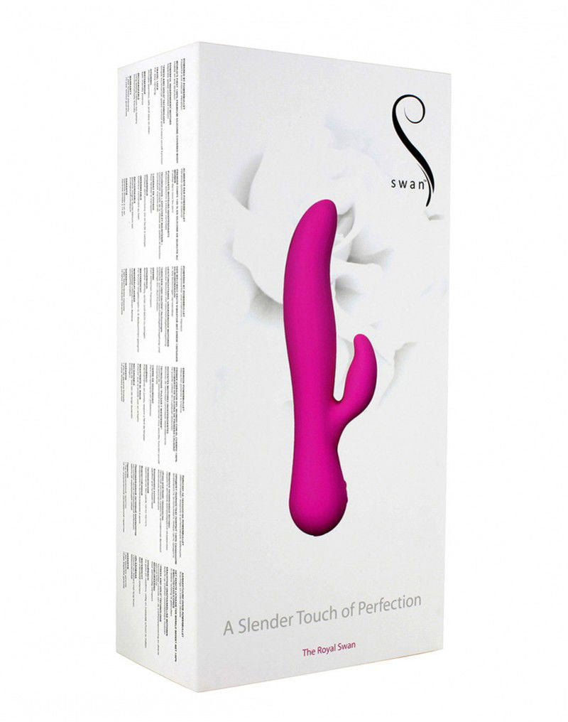 The Royal Swan omvat twee soorten van beweging die een verscheidenheid van genot verschaffen, rotatie en vibratie. Dit was de eerste vibrator in de Swan collectie, die zowel een roterend lichaam die ongelooflijke intern sensatie als een aparte trillende arm die ongelooflijke externe sensaties oplevert. De zachte siliconen voelt heerlijk op de huid. Met gladde siliconen bedekte knoppen voor veilig gebruik. De Royal Swan zal u verwennen met de meest luxueuze voldoening die je zo verdient. productspecificaties Details : Waterproof, Travel-Ready, ftalaat-vrij Afmetingen : 21,3 cm x 4,5 cm (onderkant) x 2,5 cm (kleine tip) x 3,6 cm ( grote tip) Afwerking : 100% naadloos siliconen Looptijd : tot 6 uur Oplaadtijd : 3 uur Batterij : Oplaadbare Lithium-Ion Pleasure Technologie : Afzonderlijk Gecontroleerde Vibration & Rotation Aangedreven door PowerBullet ?