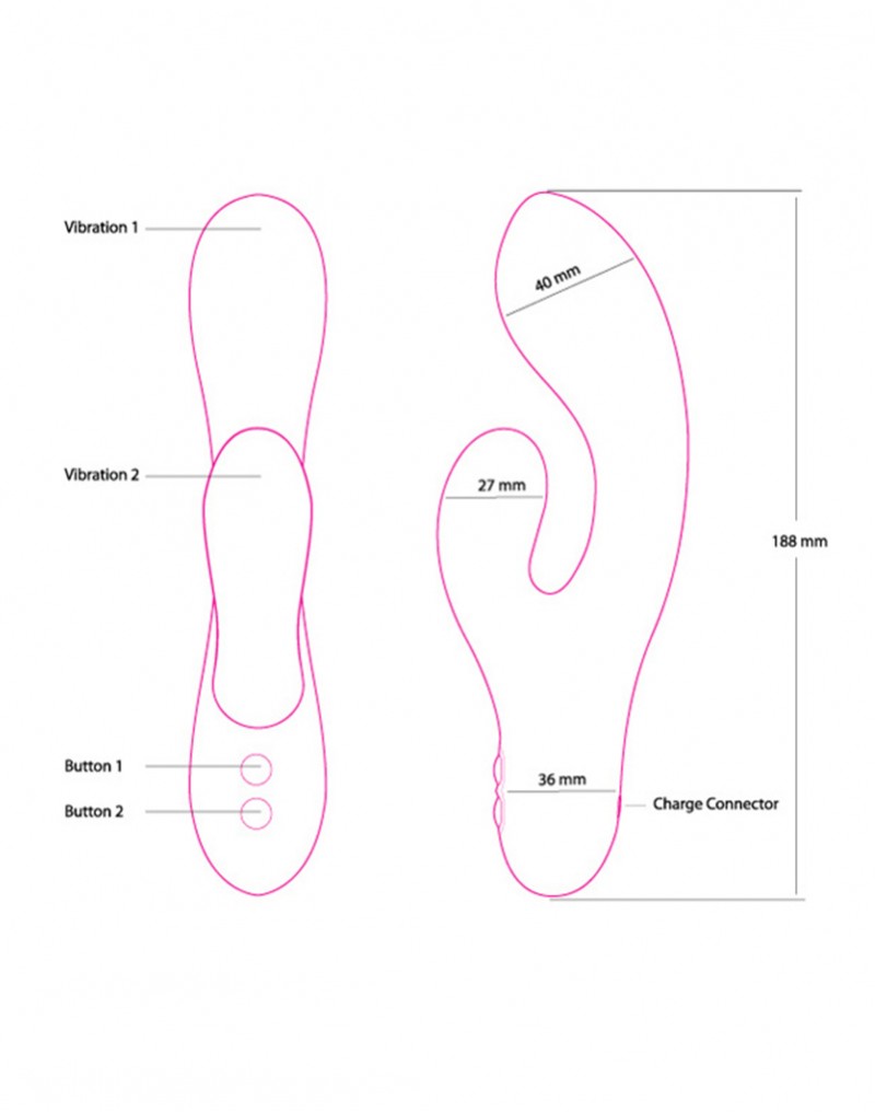 Met twee vibraties die harmonieus samenwerken met elkaar, is de bestseller Wilde Zwaan met zijn prikkelende sensaties anders dan alles wat je eerder hebt gevoeld. Met behulp van twee stimulatoren die er voor gemaakt zijn om u te plezieren, bestaat de Wilde Zwaan uit één sterke en één diepe sensatie. Dit zorgt voor een ervaring waarbij u de keuze heeft m.b.t. de intensiteit van de trillingen. Bereid je voor op de seksuele luxe waar de Wilde Zwaan om bekend staat. productspecificaties Details : Waterproof, Travel-Ready, ftalaat-vrij Afmetingen : 18,8 cm x 3,6 cm (onderkant) x 2,7 cm (kleine tip) x 4 cm (grote tip ) Afwerking : 100% naadloos siliconen Looptijd : tot 7 uur Oplaadtijd : 2 uur Batterij : Oplaadbare Lithium-Ion Pleasure Technology : 2 afzonderlijk gecontroleerde vibraties, aangedreven door PowerBullet ?